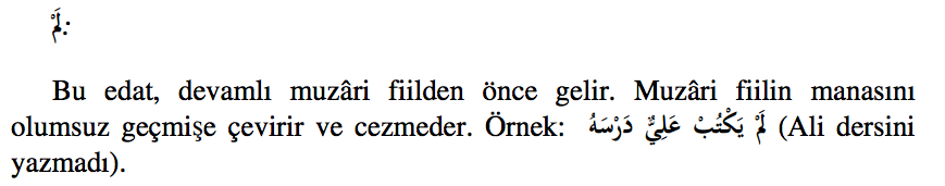 "Devamlı muzâri fiilden önce gelir. Muzâri fiilin manasını olumsuz geçmişe çevirir ve cezmeden" edat aşağıdakilerden hangisidir?