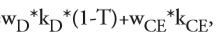 where wD is the weight of the debt component and wCE is the weight of the equity component. T is the tax rate and after-tax cost of debt component is calculated by multiplying the before-tax cost of debt (kD) by the tax deductibility. Cost of equity component is denoted as kCE in the above equation. The correct answer is B.