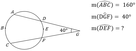 m(DGF)=(m(ABC) - m(DEF))/2 => 40 =(160 - m(DEF))/2 => m(DEF) =80°’ dir.