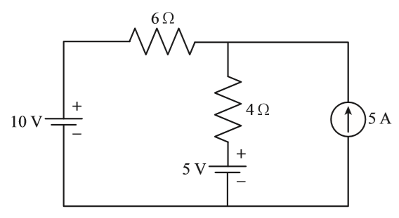 Yukarıdaki devreye göre 10 V ve 5 V’luk gerilim kaynakları kısa devre yapılarak 5 A’lik akım kaynağı devrede yapılarak 6? dan geçen akım kaçtır?