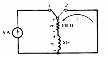 Endüktans üzerinde depolanan alan 6A’lik Sabit akım kaynağı ile aynı yönde akım geçirecektir. Bobin için akımın boşalma denklemi iL(t)= iL(0) e-t/Tşeklindedir. Zaman sabiti T=L/R dir. Böylece anahtarın 1 konumunda 6A değerine dolan bobin için anahtar 2 konumuna getirildiğinde( t > 0) çözüm aşağıdaki şekildedir;
