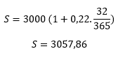 Bir bankaya 32 gün süre ile %22 faiz oranıyla yatırılan 3000 lira süre sonunda kaç lira olur (tam zaman yöntemiyle hesaplayınız)?
