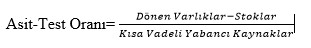 Asit-Test Oranı: Likiditenin daha doğru değerlendirilmesinde kullanılan bir ölçü de, ‘çabuk oran, hassas oran ya da asit- test oranı’ olarak ifade edilen orandır.