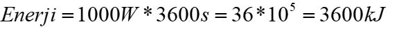 1000 W ısıtma gücündeki bir ütüyü kullandığımızda ne kadarlık bir enerji kullanmış oluruz?