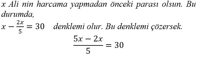 Ali parasının ini harcadıktan sonra 30 lirası kalıyor. Ali'nin harcama yapmadan önceki parası aşağıdakilerden hangisidir?