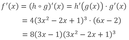 Bileşke fonksiyonun türevi kuralını kullanarak h(x)=x4 ve g(x)=3x2-2x+1 için