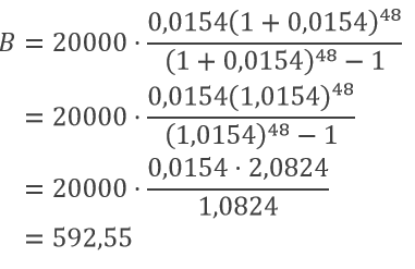borç amortismanı formülünde n=48, r=0,0154, A=20000 değerleri kullanılarak