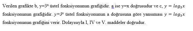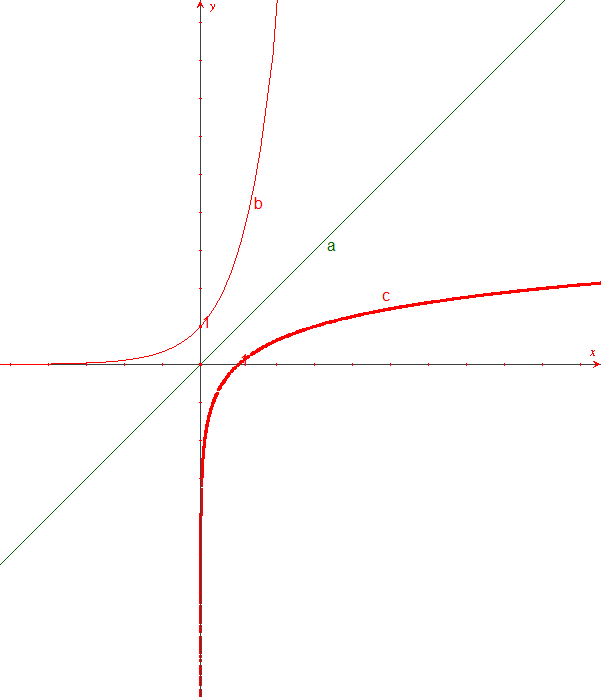 - y=ax üstel fonksiyonunun a doğrusuna göre yansıması fonksiyonunun grafiğini verir.