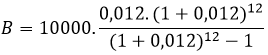 verilenler yerine yazılırsa; n=12 r=0,012 A=10000 için