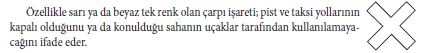 İniş, kalkış ve taksi için sadece pist ve taksi yollarının kullanılabileceğini |