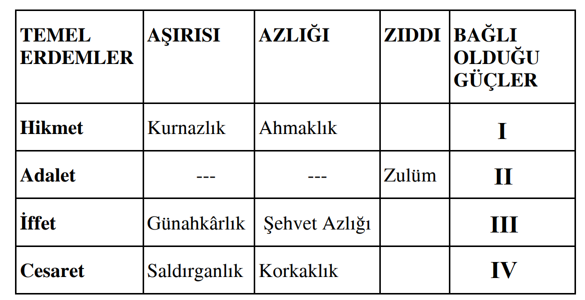 Nazari güç - ameli güç - şehvet gücü- gazap gücü |