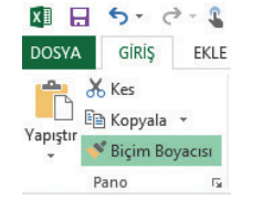 Seçili hücrenin biçimlendirmesini kopyalayarak başka hücrelere uygulamak için kullanılır. |