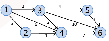 1 ve 6 düğümleri arasındaki en kısa rota 1-3-4-6 yoludur.