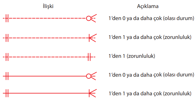 Aşağıdakilerden hangisi İlişkisel modelde "1’den 1 (zorunluluk)" ifade eder?