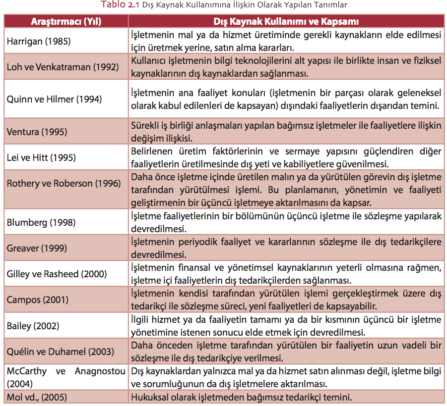 Aşağıdaki "Dış kaynak kullanımına ilişkin olarak yapılan tanımlardan" hangisi en yeni (2005) olandır?