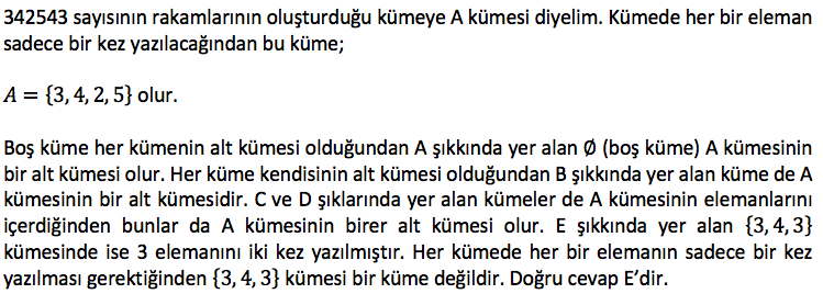 Aşağıdakilerden hangisi 342543 sayısının rakamlarının oluşturduğu kümenin alt kümelerinden biri değildir?