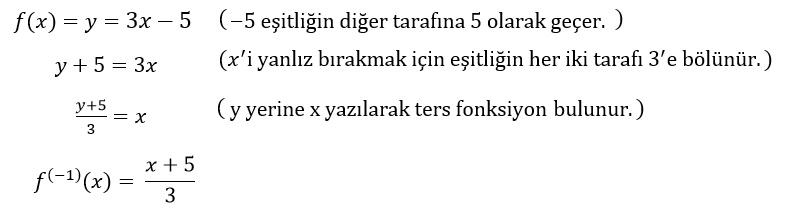 Fonksiyonun tersini bulmak için x yanlız bırakılır.