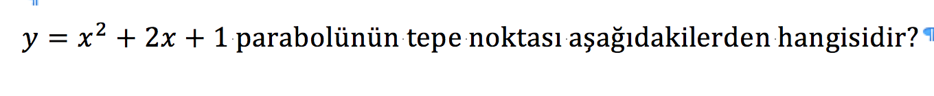 Bu parabol için (-b/2a)=-1 ve buradan x=-1 için y=0 olduğundan doğru cevap A şıkkıdır.