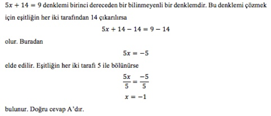 Matematik 1 Deneme Sınavı Sorusu #1204936