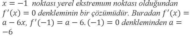 fonksiyonunun bir yerel ekstremum noktası ise