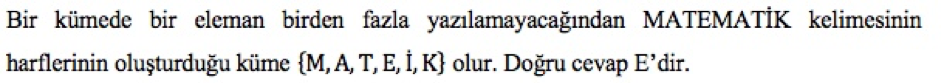 MATEMATİK kelimesindeki harflerin kümesi aşağıdakilerden hangisidir?