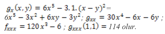 x sabit düşünülüp y’ye göre art arda 3 kez türev alınırsa