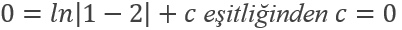 elde edilir. Buradan y(0)=1 koşulu uygulanırsa elde edilir. O halde çözüm,