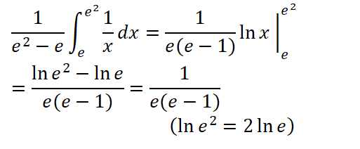 olarak hesaplanır. Buna göre f(x)=1/x fonksiyonunun [e,e²] aralığı üzerindeki ortalama değeri