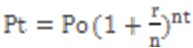 Belirli miktar büyüklüğe yılda belirli aralıklarla faiz oranı uygulandığında kullanılan formül şu şekildedir: Biz burada Pt’yi biliyoruz. Po’ı hesaplayacağız. Banka bize yıllık vade uygulayacağına göre paramıza her yıl yalnızca 1 kez faiz uygulanacaktır. Bu durumda n = 1 olacaktır. Bu verileri formülde yerine yazalım: