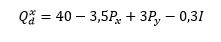 x malı için talep fonksiyonu;