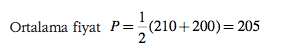 Benzer biçimde fiyatın 210 olması durumunda da Q2 = 400 bulunur.