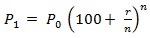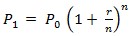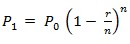 P0 > 0 (anapara) kadar para vadeli mevduat hesabına yatırılmıştır ve bu hesap r kadar sabit nominal yıllık faiz oranı önermektedir. Faiz ödemeleri yıl içerisinde düzenli aralıklarla n defa yapılmaktadır. Bir yıl sonunda anaparanın yeni durumunu gösteren hesap şöyle olur.