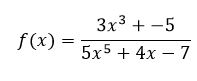 The function is a rational function. Since the degree of the numerator is less than the degree of the denominator, the following result is true: