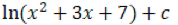 Let us use the change of variables method. Let u=x2+3x+7 which gives du=(2x+3)dx and 2du=(4x+6)dx. Substituting these values into the integral we get