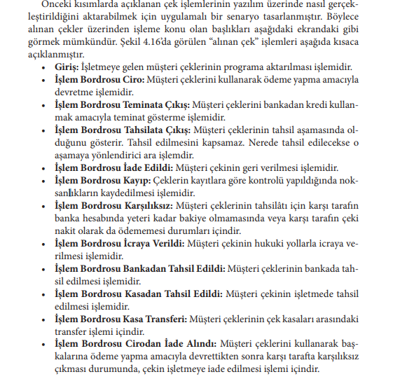 Yukarıda bahsedilen durum hangi alınan çekler işleminde gerçekleşmektedir?