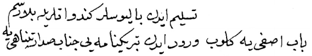 teslîm iden balyoslar kendü atlarıyla bilâ-resm Bâb-ı âsafî’ye gelüp vürûd iden tebrîk-nâmeyi cenâb-ı sadâret-penâhîye |