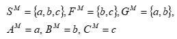 {a,b,c} kümesi üzerindeki M modelinde ve