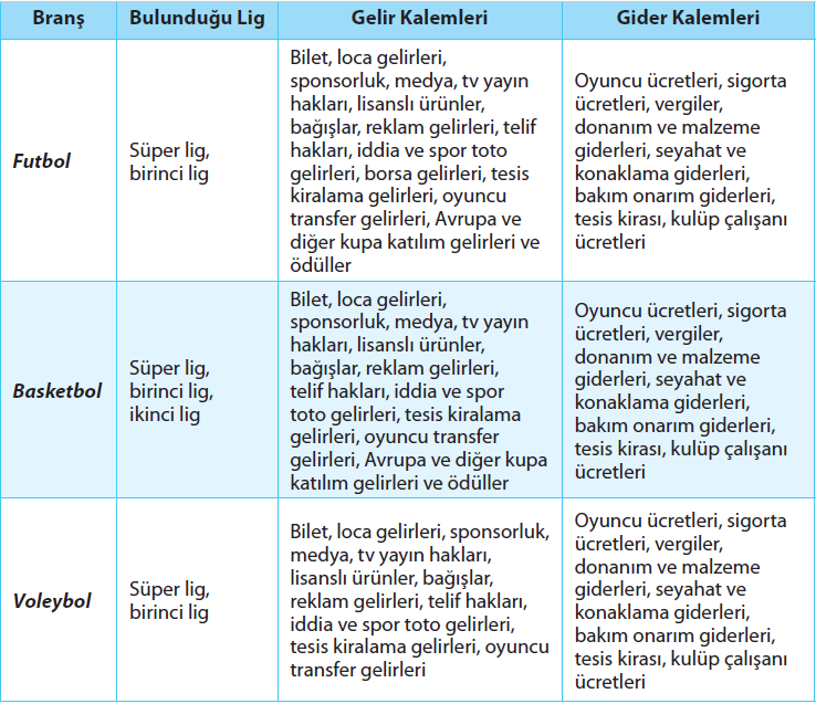 Profesyonel sporlarda branşlara göre finansal kaynaklar