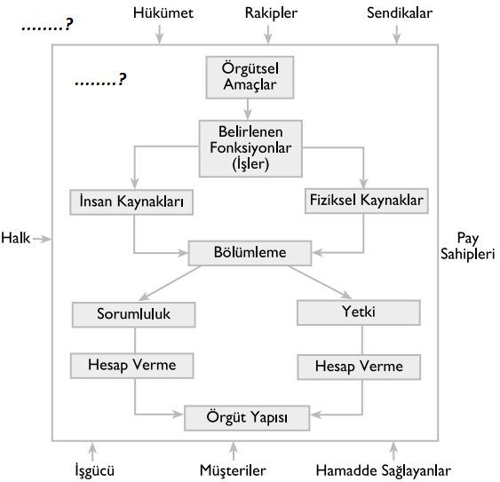 Şemada gösterilen örgütleme sürecinin tamamlanması için soru işaretiyle gösterilen boşluklara aşağıdaki seçeneklerden hangisi yazılmalıdır?