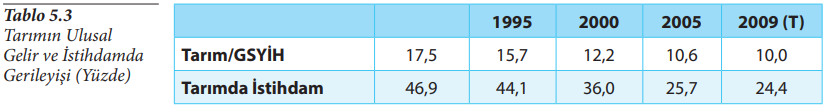 Tarımda istihdam oranları incelendiğinde aşağıdaki dönemlerin hangilerinde bu oranın en yüksek olduğu görülmektedir?