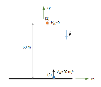 Bir top 60 m yükseklikteki binanın tepesinden ilk hızsız olarak bırakılmıştır. Aynı anda başka bir top 20 m/s hızla binanın dibinden yukarı doğru düşey olarak atılmıştır. Kaç saniye sonra karşılaşırlar? (Hava sürtünmesini ihmal ediniz, g=10 m/s2 alınız.)