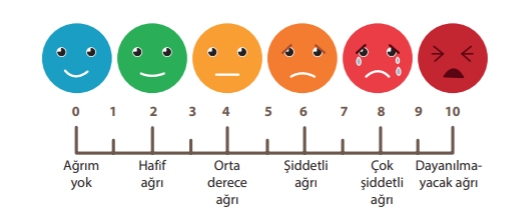Ağrı değerlendirmesi için kullanıla yüz ifadelerine bakıldığında 6 derece yüz ifadesi aşağıdakilerden hangisini temsil etmektedir?