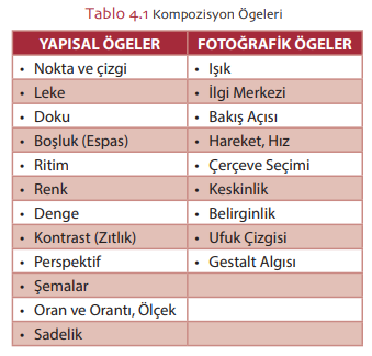 Aşağıdakilerden hangisi kompozisyonun fotoğrafik ögelerindendir?