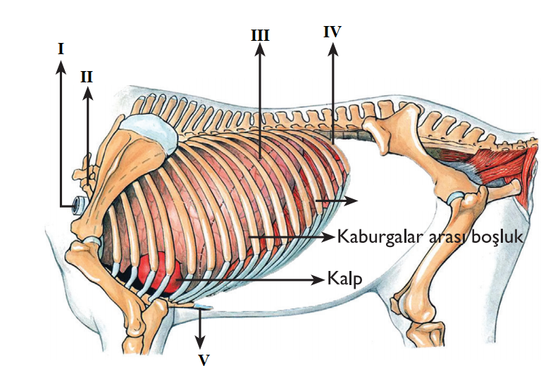 Yukarıda verilen atın göğüs boşluğunun soldan görünümünde III numara neyi ifade etmektedir?