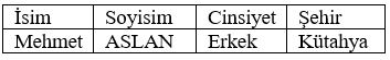 ? Cinsiyet=Kadın (A?B) işleminin sonucu aşağıdakilerden hangisidir?