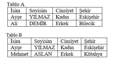 Veritabanı Sistemleri Deneme Sınavı Sorusu #732877