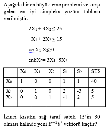 Yöneylem Araştırması Deneme Sınavı Sorusu #1372836
