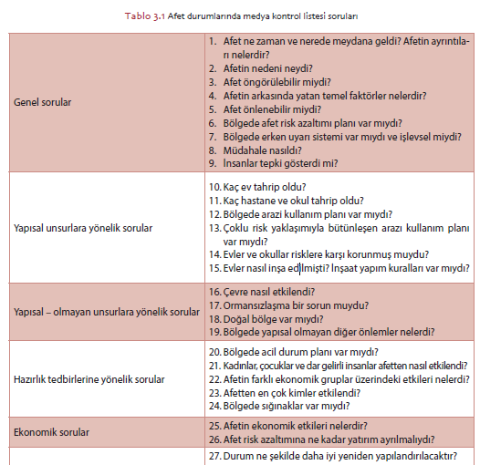 "Bölgede acil durum planı var mıydı?" sorusu Afet durumlarında medya kontrol listesi öğelerinden hangisinin kapsamında sorulur?