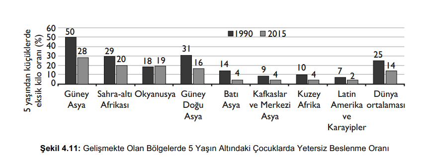 1995-2015 yılları arasında gelişmekte olan ülkelerde 5 yaşın altındaki çocuklarda yetersiz beslenme oranı aşağıdaki bölgelerin hangisinde daha yüksektir?