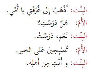 Arapçada (المدرسة) kelimesi okul, (البيت) kelimesi ise ev anlamına gelir. Yakın kelimesi ise (قريب) dir. Bir yere yakın olmak (...قريب من) ile ifade edilir."Okul eve yakındır." cümlesinin karşılığı: